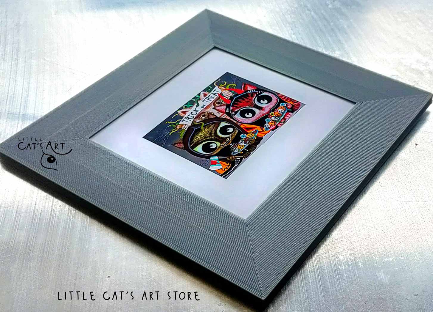 The sweet and a bit scary picture is hand-painted using professional graphic tablet and carefully printed on a hard paper.