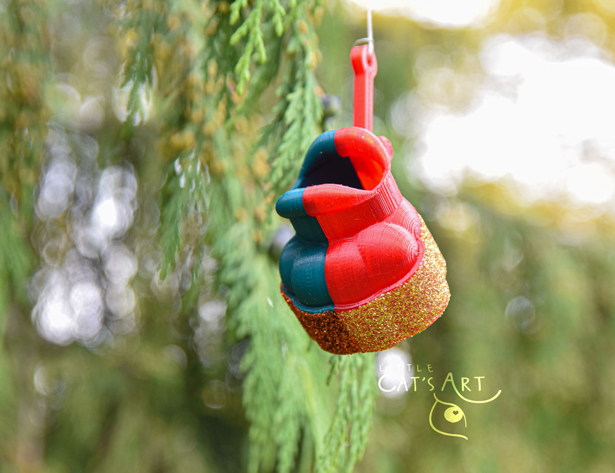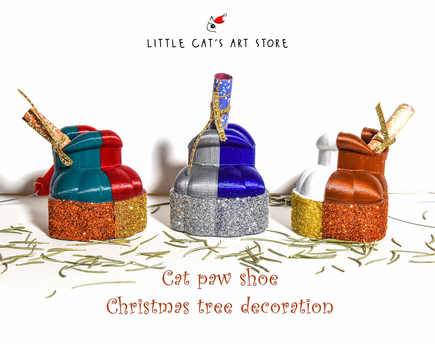 The red and green cat paw shoe is an adorable Christmas Tree hanging decoration.